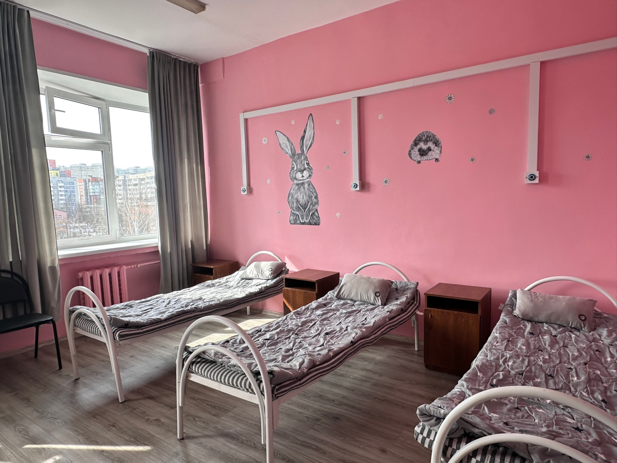 Стены одной из палат покрасили в розовые тона, чтобы поддержать позитивный настрой маленьких пациентов. В ближайшее время планируется привести в порядок ещё одну палату.