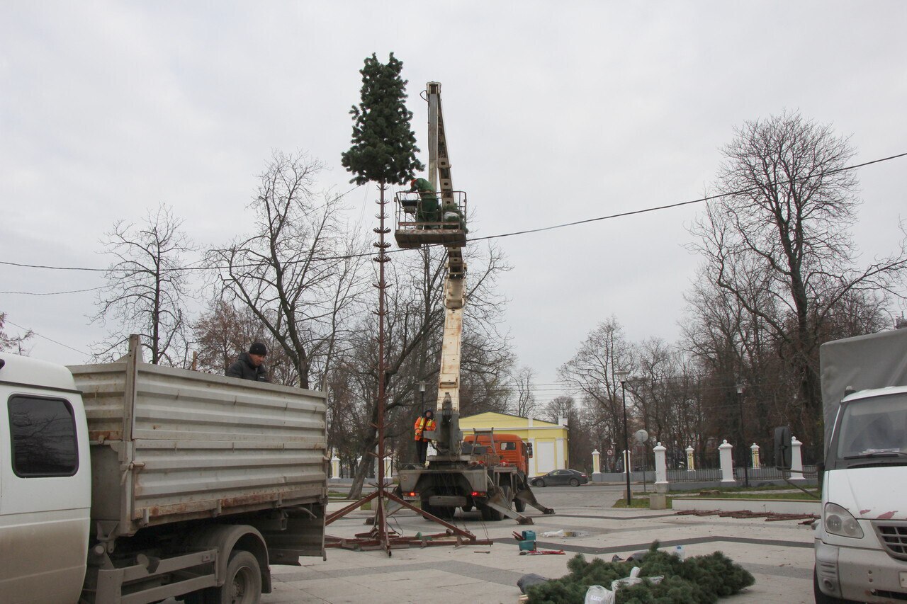 Первую новогоднюю ель в Рязани уже установили около КДЦ «Октябрь». Сейчас монтаж идёт в Верхнем городском парке.