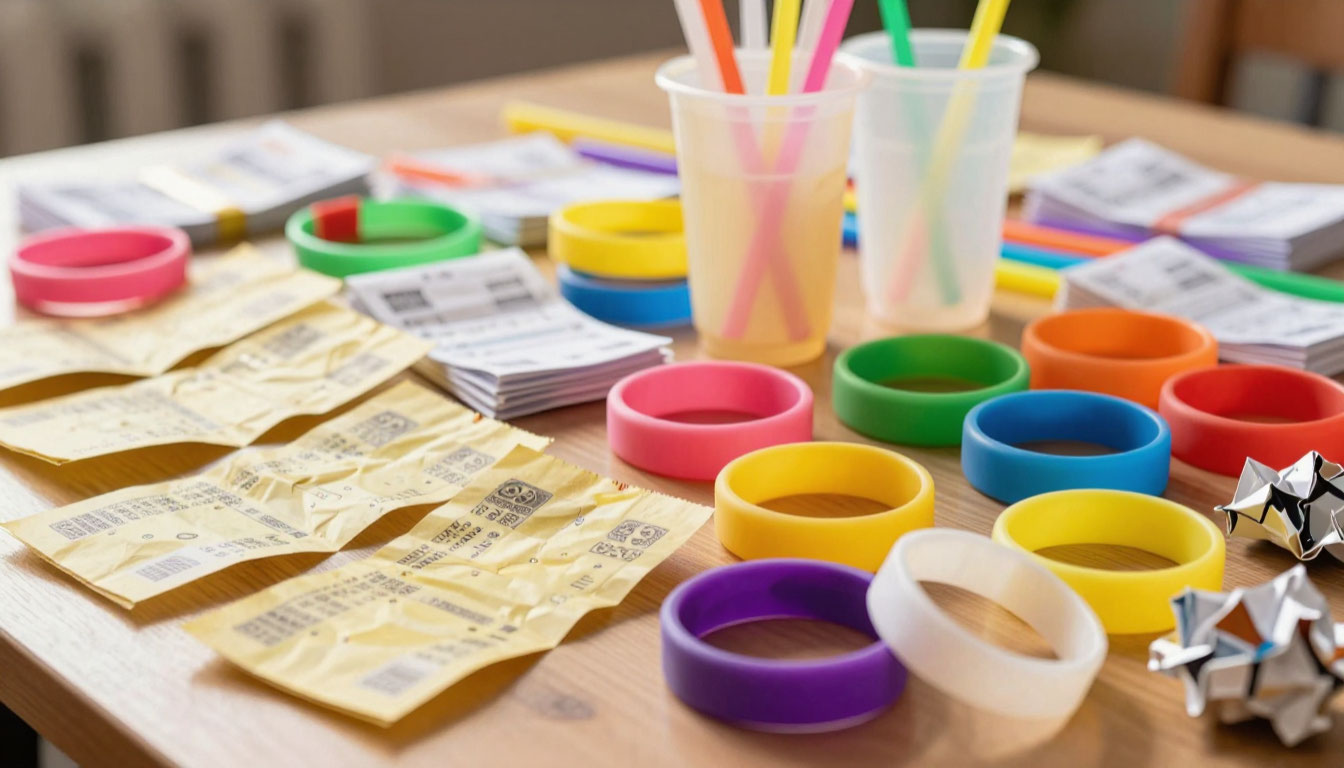 К сбору принимаются: чеки, ручки и фломастеры, силиконовые браслеты, деревянные палочки от суши и мороженого, блистеры с таблетками, упаковки от контактных линз, зажимы от хлебных пакетиков и многое другое.