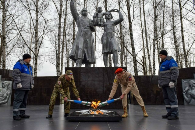 В парке зажгли Вечный огонь. К мемориалу доставили частицу пламени, взятую от Вечного огня на площади Победы г. Рязани.
